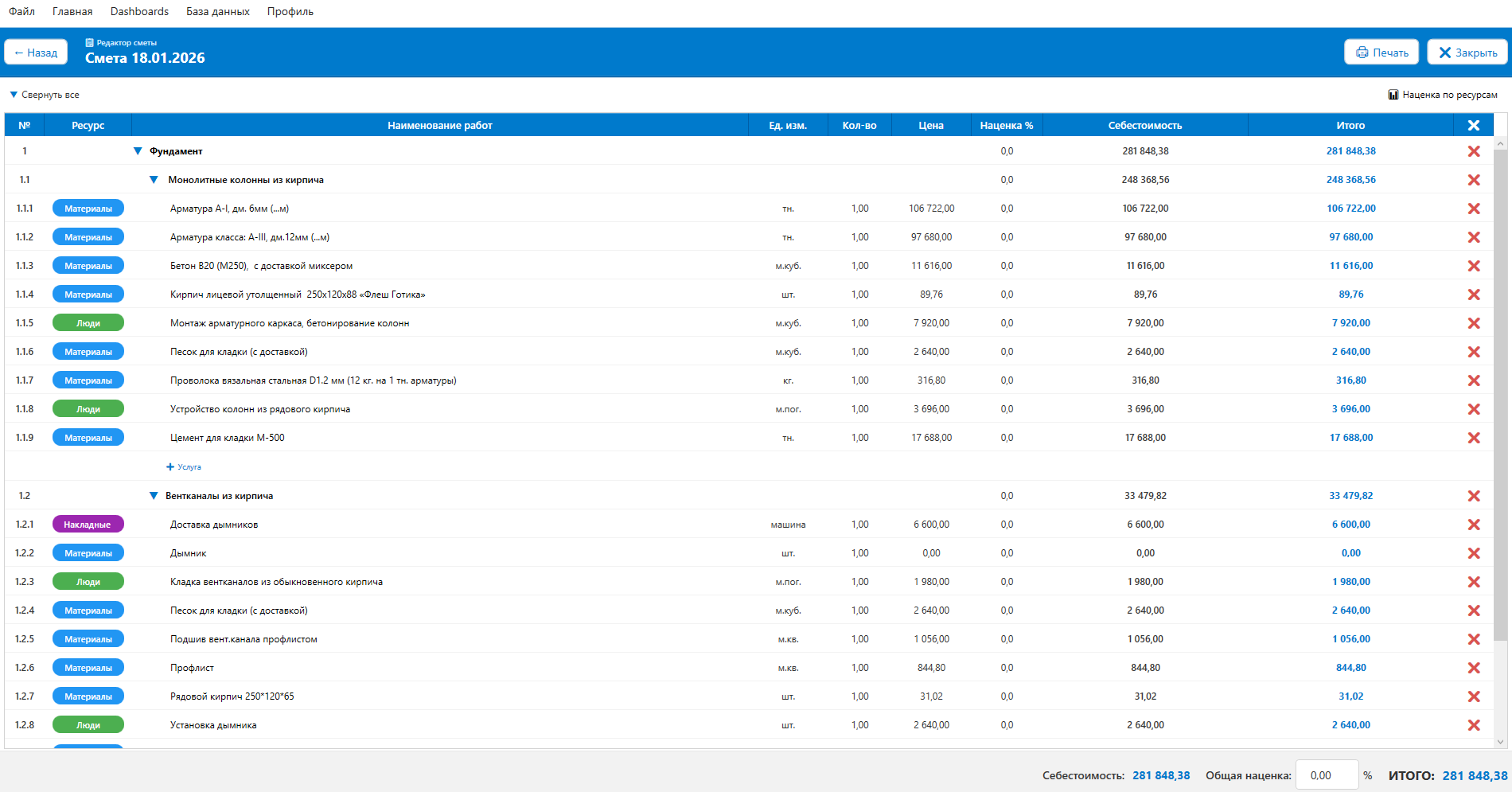 Наценка по этапу работ